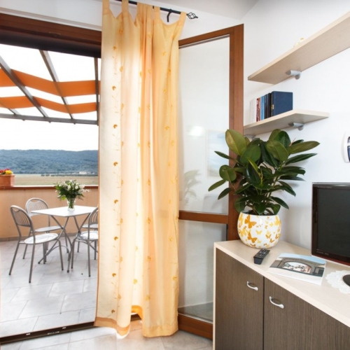 Circondato dal verde ed affacciato sul mare, il nostro residence offre 8 Camere, 27 Bilocali, 9 Trilocali ed č lideale per gruppi, famiglie e amanti del kite e wind surf